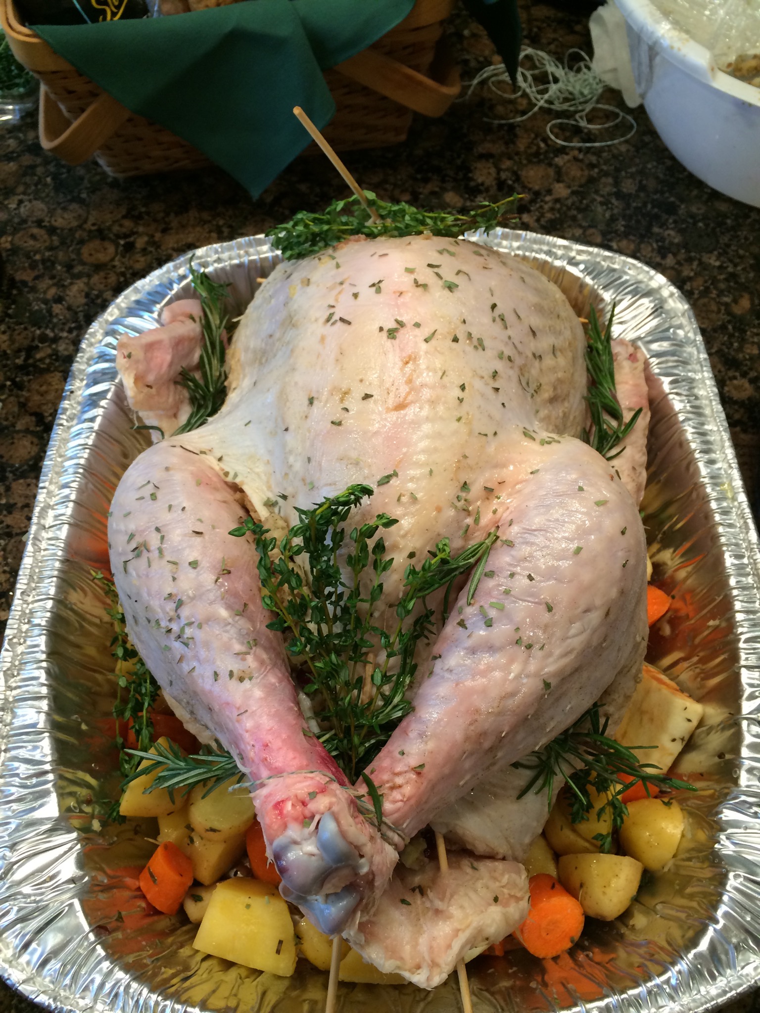A few days ago, my son came into my home office (aka a guest room with an actual computer station – remember those?) with an announcement that I had almost given up hope of ever hearing. My son is thirteen and in that stage of his life where he is growing so fast that he is running out of clothes that fit him before I can order new ones. The other day, he opted to wear a pair of shorts in 48 degree weather since his few pairs of pants that fit were tangled in a pile of dirty apparel on his carpet, yearning for the four walls of the hamper. So it shouldn’t have surprised me when he announced that he had been thinking (such a good pastime) and because he wants to grow to his full potential (after all, his grandfather had been 6’1″) that he wanted to start eating “poultry” again. I could barely contain my glee but managed a suppressed smile while I discussed the implications of this decision with him. Since he specifically said poultry, red meat or other ‘white meats’ like pork were excluded but poultry would also encompass ‘turkey’ which means the turkey leg would be his once more on the most wonderful of holidays that was fast approaching,Thanksgiving. I, of course, told him that I thought he was making a wise decision and gave him a hug of support while the ‘Alleluia’ chorus played in my head. After he left the office, I began to list in my mind all of the ways I could prepare ‘poultry’ like Bubba’s litany of shrimp dishes in Forrest Gump: there’s roast chicken, breadcrumb coated chicken, chicken parmigiana, fried chicken and biscuits, chicken salad, and other poultry like roast capon, roast Long Island duckling, Peking duck, duck a l’orange, Cornish game hens, quail, pheasant, and of course roast turkey. This morning, I prepped the turkey, I can even say I ‘dressed’ the turkey (not in literal fashion like Amelia Bedelia which ironically my pescatarian daughter portrayed at a local library waving around of all things a rubber chicken) by massaging it with butter and olive oil, seasoning in inside and out with fresh spices and herbs still on their stems, filling its cavities with homemade cornbread, chestnut, cranberry, celery and onion stuffing then placing it on a bed of diced root vegetables. This would be the first turkey my son would be tasting in two years and I had to make sure it was so darn delectable that he would never ever revert to pescatarianism. After grace today, my husband asked for the platter on which the turkey legs lay, took one then offered the platter to my son as a dozen of us watched in breathless anticipation. My son grabbed the leg, held it up with a grin, and was met with a table full of nodding smiling faces, even the lone Pescatarian approved. Oh how I wish I had my camera ready! I felt victorious as if I had weathered a battle and won. A Happy, Blessed, and Joyous Thanksgiving to all the Moms (or others) who put together the Thanksgiving feasts and to the families who partake. Mmm, now what to make for Christmas?